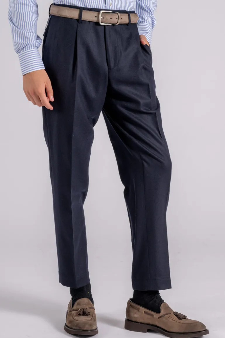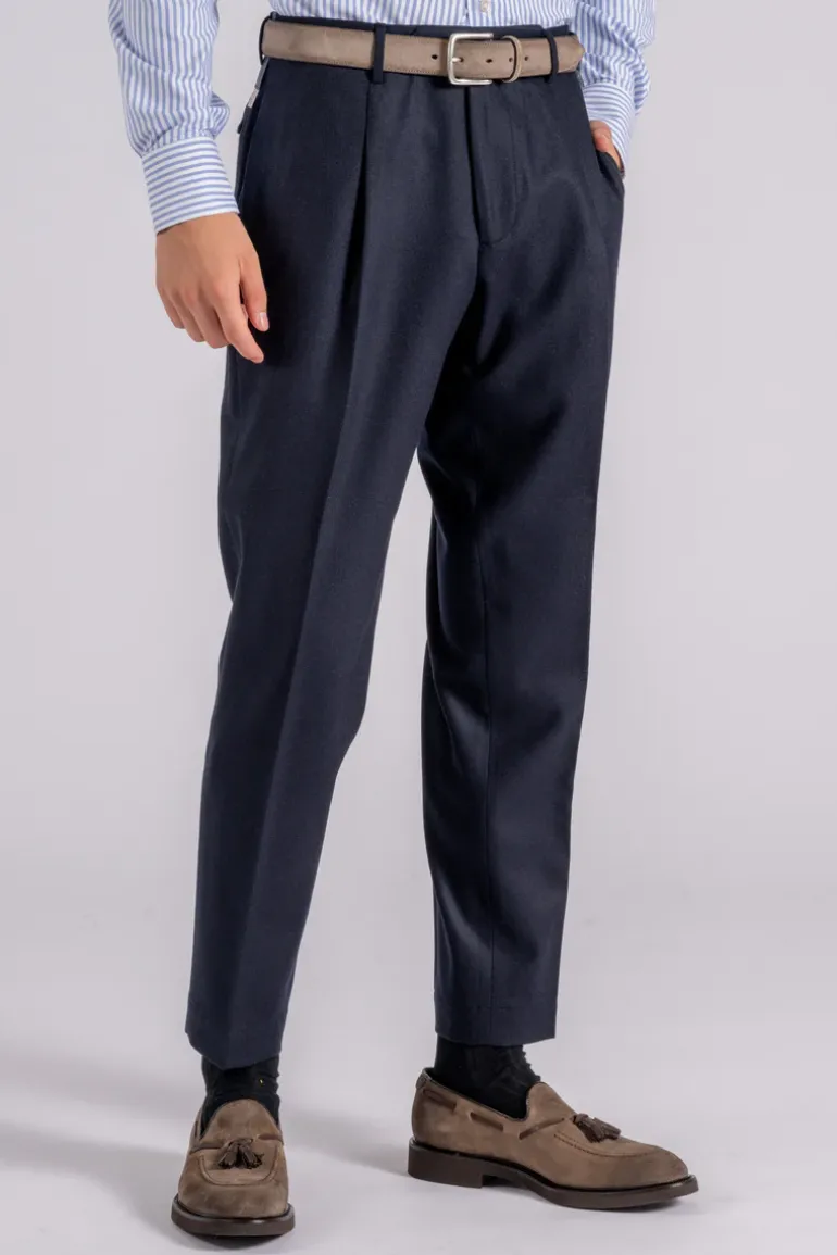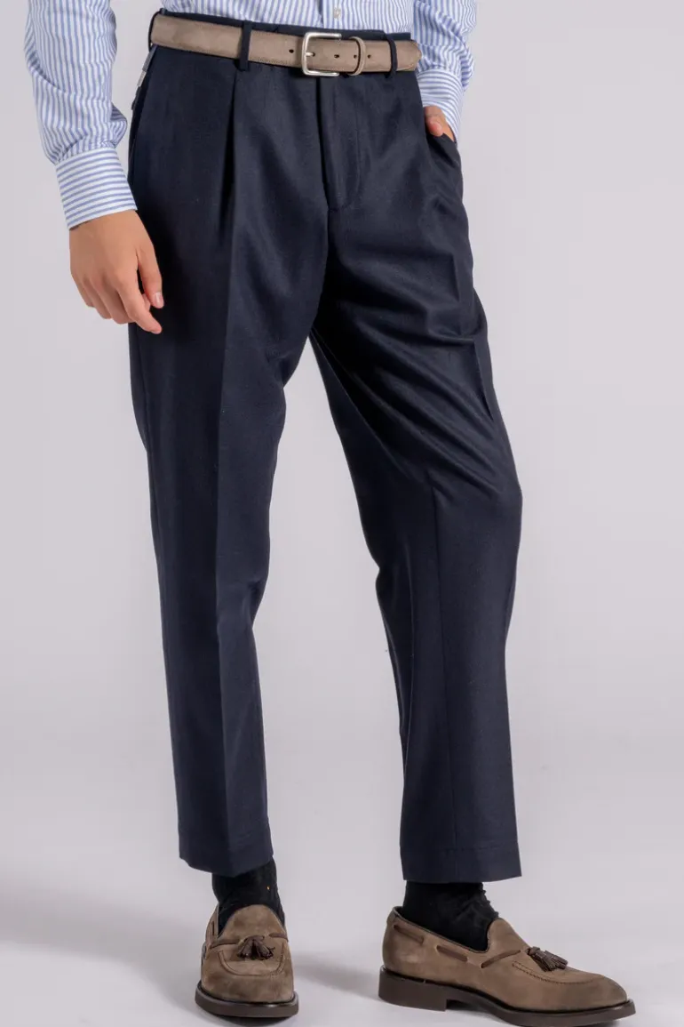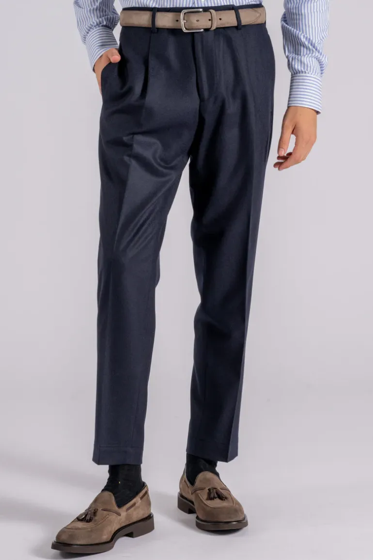 Lavora il tuo look intorno a questi pantaloni blu Santaniello. Perfetti per un outfit da ufficio, abbinati ad una camicia bianca e mocassini in pelle. Oppure, per un look più casual, indossali con un pullover leggero e sneakers bianche.