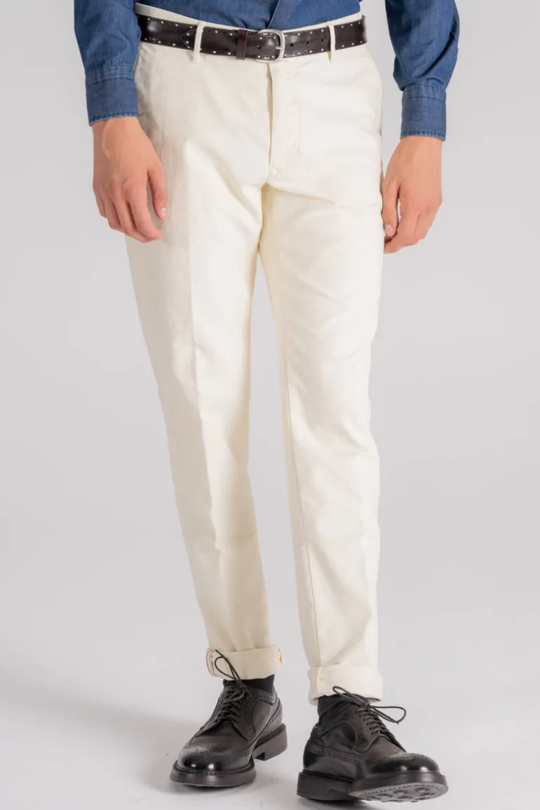 Il pantalone bianco si presenta come un capo d’abbigliamento versatile e raffinato, fondamentale nel guardaroba di ogni uomo. Perfettamente abbinabile con una camicia elegante per un look formale, o con una polo per un outfit più casual.
