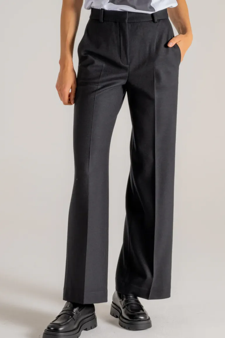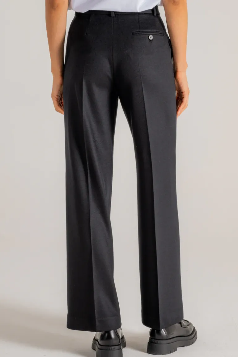 Completa il tuo look con i pantaloni in lana nera Circolo 1901, abbinandoli ad un elegante blazer e a stivaletti con tacco per un outfit raffinato, o scegli un maglione a collo alto e sneakers per un look casual e alla moda.