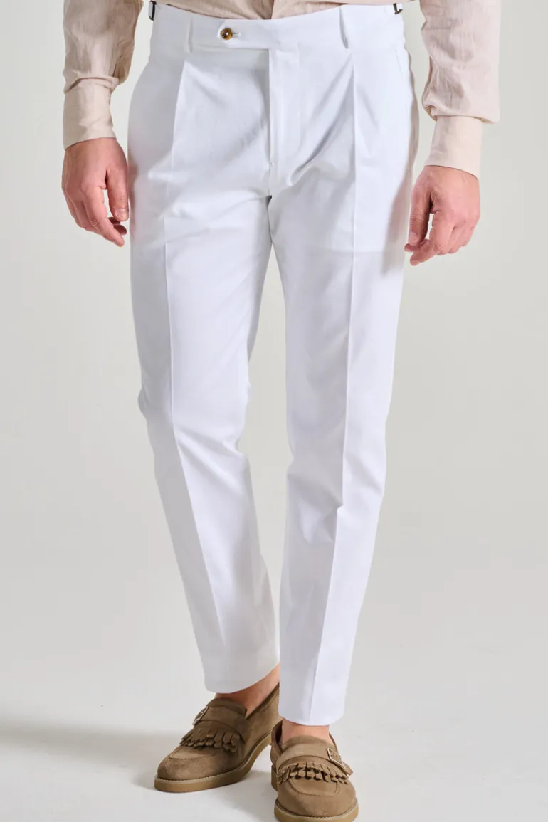 I pantaloni Berwich da uomo in bianco sono un capo essenziale per il tuo guardaroba. Con un design elegante e versatile, si adattano facilmente a diverse occasioni, dall’ufficio al tempo libero. Questi pantaloni sono caratterizzati da una vestibilità comoda e moderna, che garantisce massima libertà di movimento.