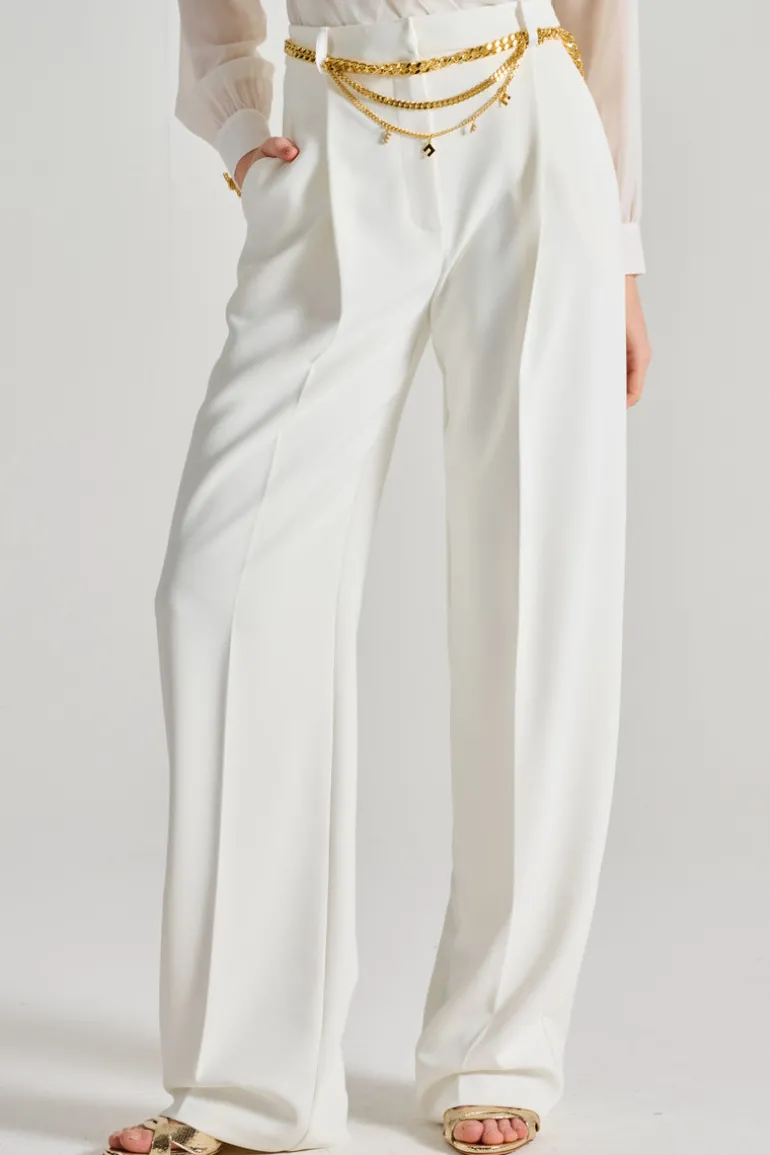 I pantaloni Essential di Elisabetta Franchi sono un must-have per il tuo guardaroba. Dalla linea elegante e raffinata, questi pantaloni bianchi si adattano facilmente a diverse occasioni, che si tratti di un incontro di lavoro o di una serata informale.