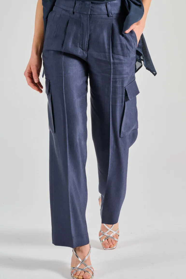 Il colore blu dona a questi pantaloni un’aria di classe, rendendoli facilmente abbinabili con numerosi outfit. La gabardina lucida aggiunge un tocco distintivo e contemporaneo, per un look sempre attuale.