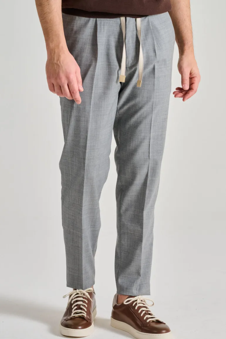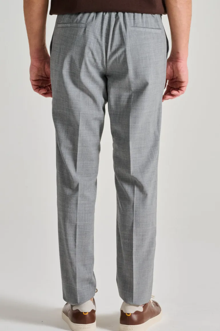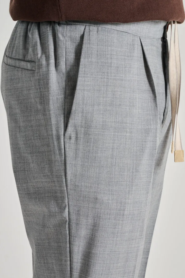 Scopri i pantaloni Devore in tecnowool, un capo di abbigliamento versatile e di alta qualità, perfetto per ogni occasione. La tonalità di grigio conferisce a questi pantaloni un aspetto elegante e moderno, adatto sia per l’ufficio che per eventi informali.