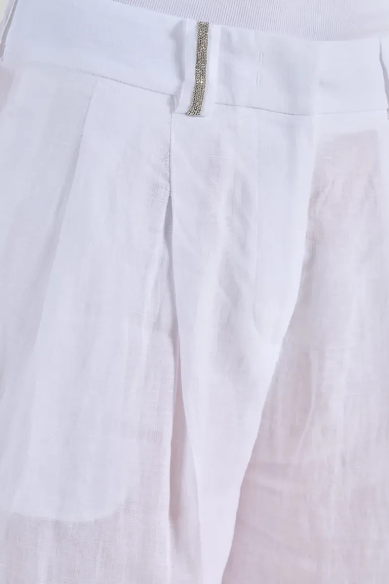 I pantaloni in tela leggera bianca di Peserico sono un capo essenziale per ogni guardaroba. Realizzati con attenzione ai dettagli, questi pantaloni combinano comfort e stile, rendendoli perfetti per diverse occasioni. Caratterizzati da una vestibilità raffinata, sono ideali sia per il giorno che per la sera.