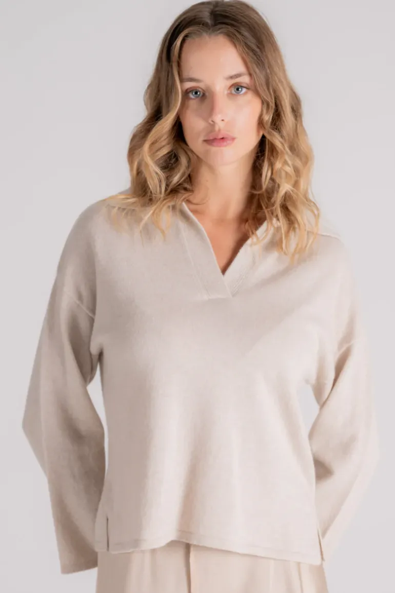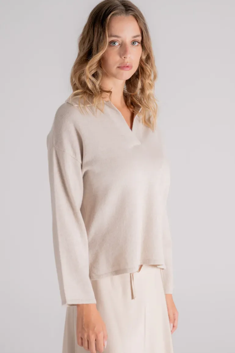 Abbinamento:La polo beige si abbina perfettamente con un paio di jeans scuri e stivali per un look casual. Oppure, combinare con un paio di pantaloni eleganti e scarpe col tacco per un outfit più sofisticato.