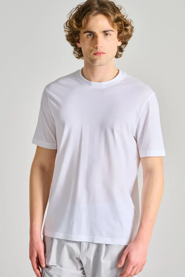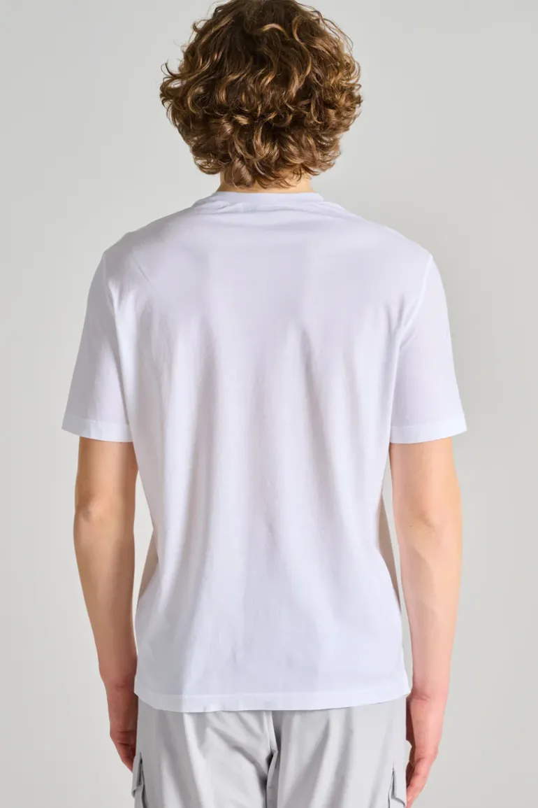 Il design semplice e pulito consente di abbinarla facilmente a qualsiasi outfit, sia per un look casual che per occasioni più informali. Realizzata con attenzione ai dettagli, questa t-shirt è un must-have per chi cerca un’eleganza discreta e funzionalità.