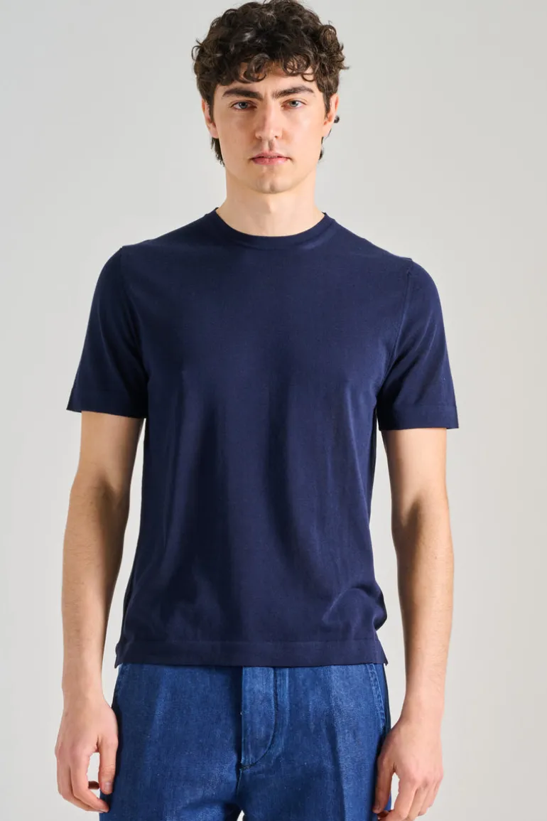 Scopri la t-shirt in cotone **blu** di hindustrie, un capo essenziale per il tuo guardaroba. Questa maglietta è perfetta per chi cerca comfort e stile, grazie al suo design versatile che si adatta a molteplici occasioni.