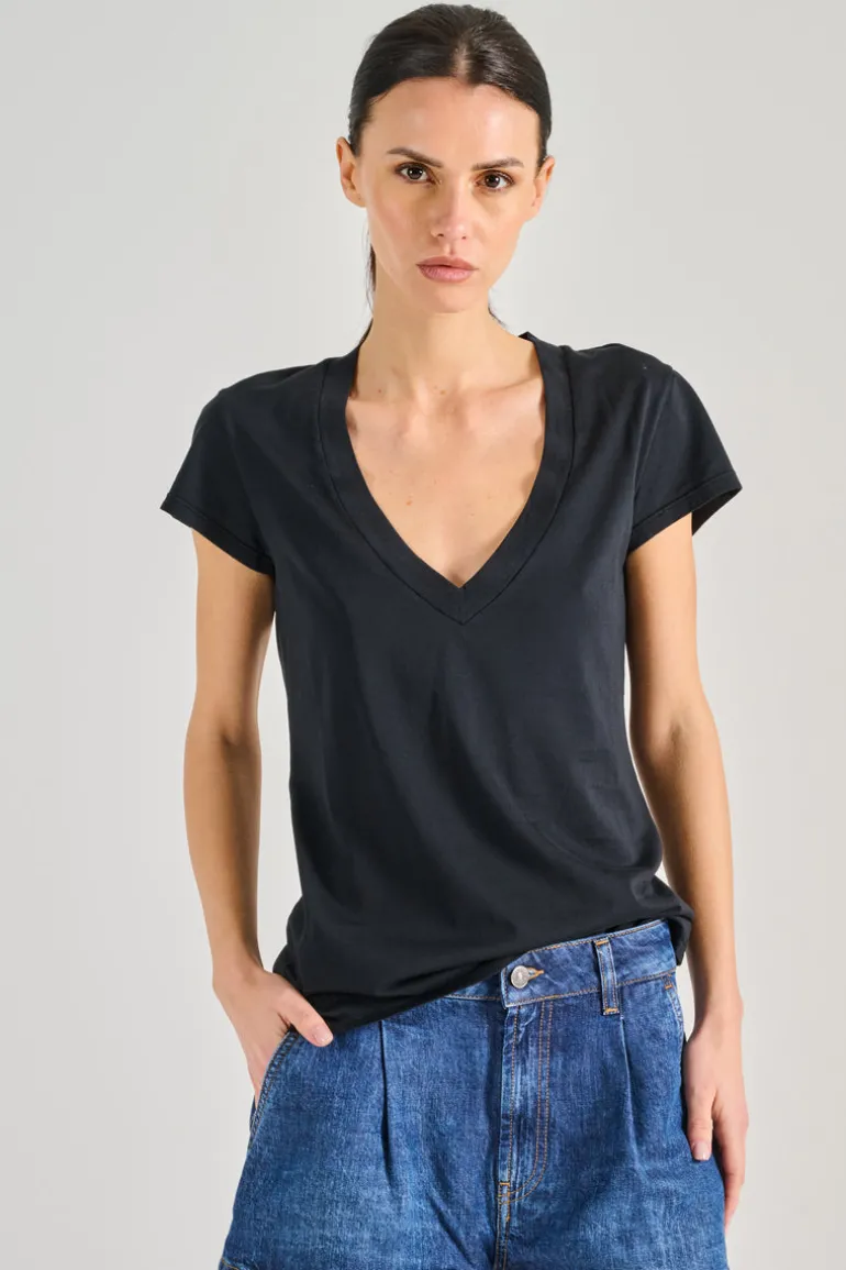 Realizzata con un’attenzione particolare ai dettagli e alla vestibilità, questa t-shirt offre comfort e stile. Accostala a jeans per un look casual o a una gonna elegante per una serata fuori. Un capo fondamentale da avere nel tuo armadio, adatto a diverse combinazioni di outfit.
