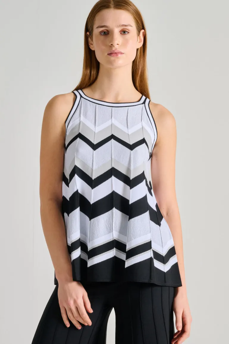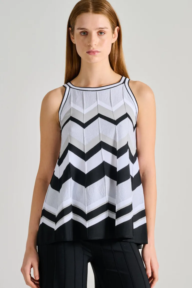 Scopri il top in fantasia righe di d.exterior, un capo versatile e alla moda che arricchisce il tuo guardaroba. Questo modello, dallo stile unico, è perfetto per occasioni informali ma anche per look più eleganti.